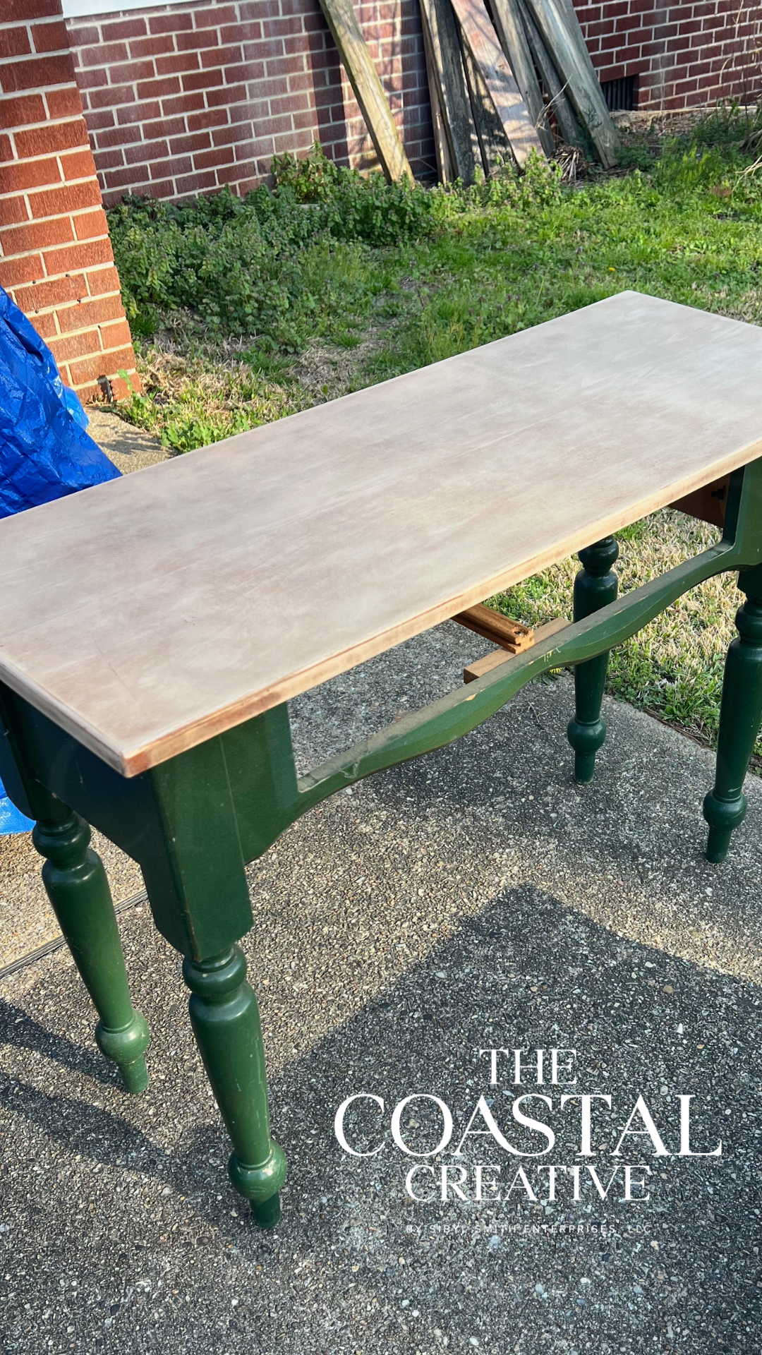 One 16 oz jar of Tide Pool was just enough to cover the entire exterior of this piece, which I thought was impressive. The color is that perfect minty coastal teal that immediately says "beach house" without screaming it.