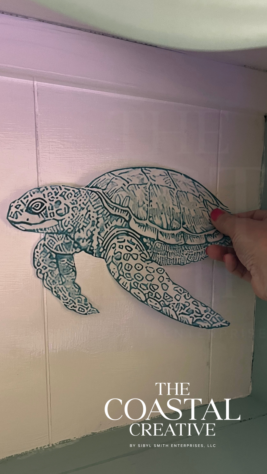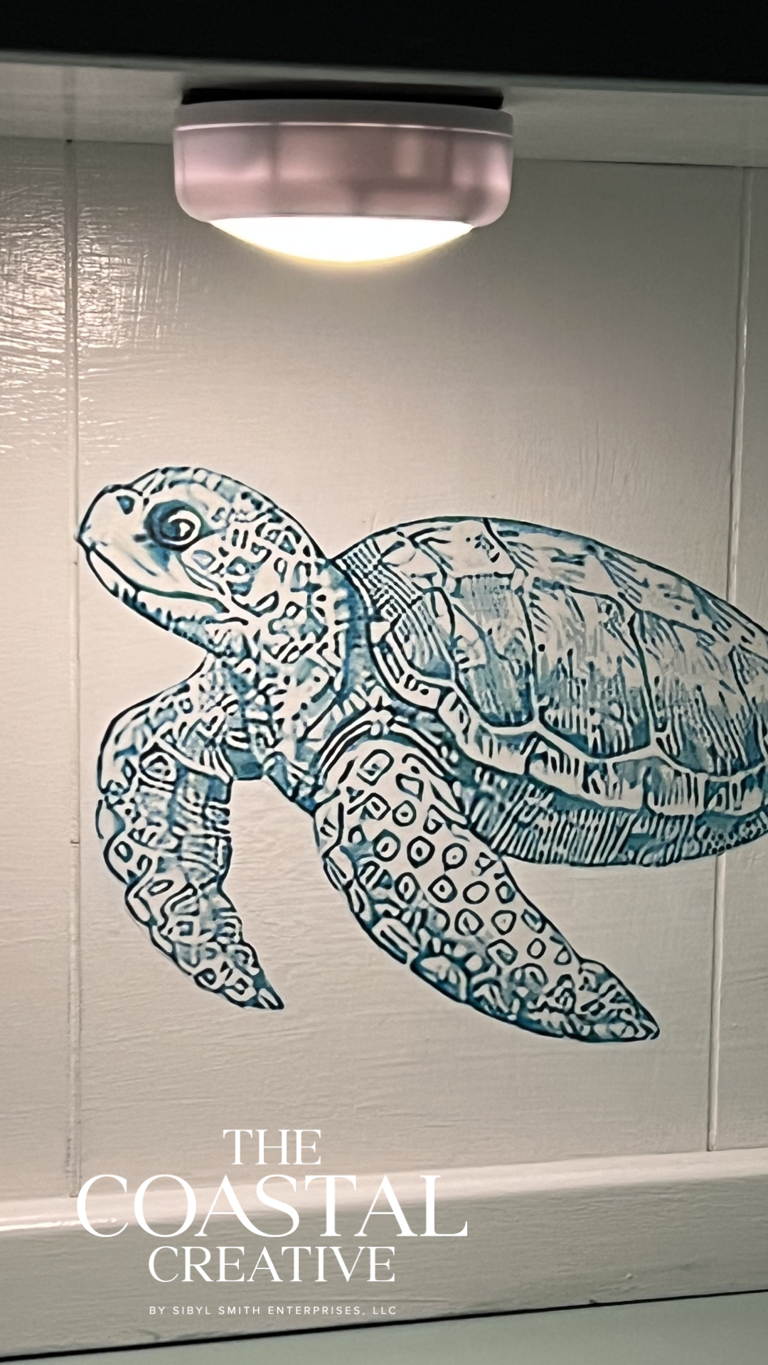 If you've been following along with the Teal Collection, you already know my sea turtle and coral design has shown up on oyster shell crosses, Easter bunnies, Christmas trees, and more. But this time? I took that same original pattern and went big — like, furniture big. And I am completely obsessed with how it turned out.