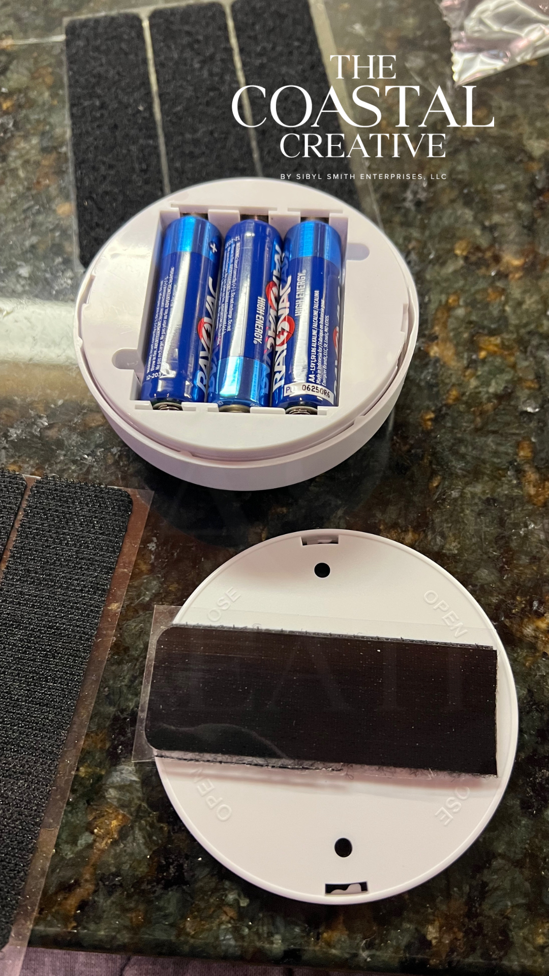 And then there are the lights. I installed remote-controlled undermount puck lights inside each shelf — and honestly, they take this piece from lovely to absolutely dreamy. Seeing those shelves glow with the sea turtles swimming in the light? I could stare at it all day.